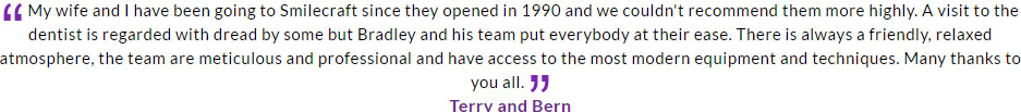 Bradley and his team provide an exceptional service and I can't recommend Smilecraft Dental Care highly enough.